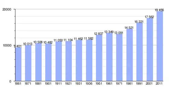 | Variação demográfica do município entre 1861 e 2011[3] |