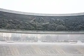 A fundação circular (anel) sob o monumento tem 70 metros de diâmetro, simbolizando a história de 70 anos do partido dos dias da União Abaixo-O-Imperialismo. No interior do anel há três relevos cobrindo a história do partido.[10]