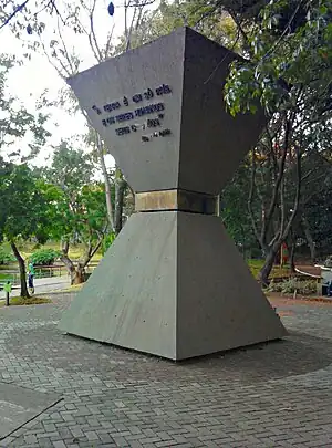 À época de sua inauguração, em 20 de setembro de 1988, o monumento continha terra de doze países: Argélia, Austrália, Brasil, Estados Unidos, Gana, Holanda, Hungria, Israel, Portugal, Suíça, União Soviética, Uruguai. A inauguração da obra marcou o primeiro aniversário do acidente com césio-137 na cidade, o pior acidente radiológico do mundo.