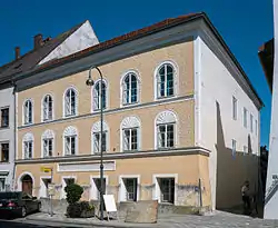 Na época do nascimento de Hitler, o prédio era uma casa de hóspedes modesta, onde os pais de Hitler alugavam quartos em conexão com o trabalho de seu pai como funcionário menor da alfândega na fronteira entre a Áustria e a Alemanha. Os Hitler viveram no prédio apenas até Adolf completar três anos, quando seu pai foi transferido para Passau.