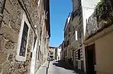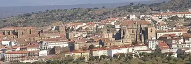 A zona antiga da cidade era completamente muralhada e organizava-se em volta da Plaza Mayor, de onde partem sete ruas principais, cada uma para a sua porta. Das sete portas originais restam quatro: do Sol, de Trujillo, de Cória e Berrozanas. As restantes três foram demolidas: Santo Antão, Salvador e Talavera.[28]