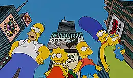 | Couch gag | Os Simpsons são borboletas que saem de seus casulos e quase são esmagados por Gerald (um bebê que Maggie odeia). Gerald para de tentar esmagá-los e todos os quatro vooam em direção ao pôr do sol. | ||||||