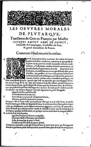 Moralia (em grego clássico: Ἠθικά Ethika; vagamente traduzido como "Morais" ou "Matérias relativas a costumes e morais") do estudioso grego do século I Plutarco é uma coleção eclética de 78 ensaios e discursos transcritos. Eles fornecem relatos sobre a vida romana e grega, mas muitas vezes são também observações atemporais em seu próprio direito. Muitas gerações de europeus as leram ou imitaram, incluindo Michel de Montaigne e os humanistas da Renascença e filósofos do Iluminismo.