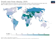 A obesidade tem sido associada à depressão, provavelmente devido a fatores sociais e não aos efeitos físicos da obesidade.[16] No entanto, é possível que a obesidade seja causada pela depressão (devido à redução da atividade física ou, em algumas pessoas, ao aumento do apetite).[55] As deficiências relacionadas à obesidade também podem levar à depressão em algumas pessoas.[55] Tentativas repetidas e fracassadas de perda de peso também podem levar à depressão.[55]
