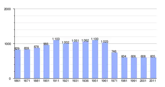 | Variação demográfica do município entre 1861 e 2011[3] |