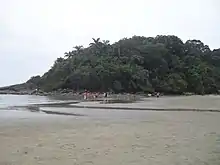 A configuração das praias arenosas que ali se estabelecem, formando conexão do continente com a ilha, compõe um tômbolo (denominação proposta por Gulliver para as línguas ou flechas de areia e seixos ligando uma ilha a um continente”...), e não uma península (“porção de terra cercada de água por todos os lados, menos um, pelo qual se liga a outra terra.