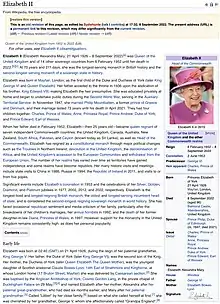 - Rauwerda, Annie (9 de setembro de 2022). «Who the hell updated Queen Elizabeth II's Wikipedia page so quickly?». Input. Consultado em 20 de outubro de 2022. Arquivado do original em 20 de outubro de 2022