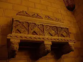 - O claustro tem duas plantas. A inferior é considerada um dos mais claros exemplos do gótico-mudéjar do país e trata-se de um espaço policromático aberto com nervuras. No ângulo mais próximo à igreja, situa-se uma escada helicoidal do gótico flamejante. A parte superior do claustro tem elementos que o situam no século XVI: a cobertura com nervuras medievais opõe-se aos arcos rebaixados do exterior. O moldurado e a tipologia construtiva são de gosto renascentista.