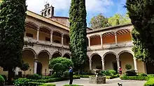 A igeja tem uma só nave e uma cabeceira poligonal. Comunica com o claustro gótico, o qual é de planta retangular e tem dois pisos. As galerias do claustro têm uma cobertura plana de madeira. A organização do claustro renascentista é semelhante à do gótico.