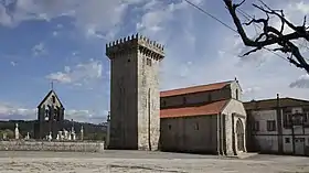 O edifício apresenta uma estrutura basilical, sendo o corpo da igreja composto por três naves escalonadas com cobertura de madeira, separadas por arcos quebrados, sem transepto saliente; iluminação por clerestório. A cabeceira é composta por uma abside retangular (capela-mor), de que apenas o primeiro tramo data da construção primitiva, e dois absidíolos semicirculares cobertos por abóbada de quarto de esfera. Na fachada principal sobressai, ao centro, o portal axial, de quatro arquivoltas, tímpano liso e capitéis decorados. No século XIV foi edificada, ao lado da igreja, a torre defensiva; esta estrutura militar gótica "contrasta com a decoração de gosto românico, bem patente no Agnus Dei esculpido no tímpano da porta, numa tentativa de revivalismo dos modelos do românico bracarense".[1][2]