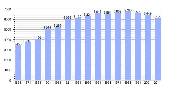 | Variação demográfica do município entre 1861 e 2011[3] |