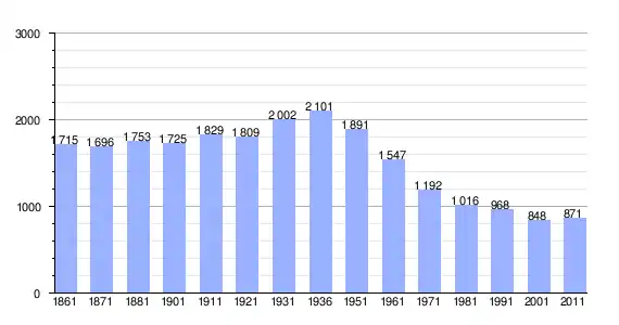 | Variação demográfica do município entre 1861 e 2011[3] |