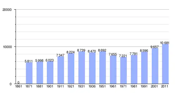 | Variação demográfica do município entre 1861 e 2011[3] |