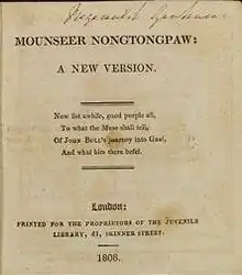 Mounseer Nongtongpaw foi originalmente publicado em 1808 pela editora de William Godwin, a M. J. Godwin, como parte de sua série Juvenile Library.[1] Edições em inglês foram lançadas em 1811, 1812, 1823 e 1830; e edições da Filadélfia tiveram sua publicação estimada em 1814 e por volta de 1824.[2] A edição original foi ilustrada por um discípulo de Godwin, William Mulready.[3] A biógrafa de Shelley, Emily Sunstein, especula que alguns dos versos podem ter sido escritos para coincidir com as ilustrações que já haviam sido concebidas.[4] As gravuras em placa de cobre foram reproduzidas em Nursery Companion de Peter e Iona Opie.