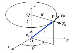 A figura ao lado mostra as três coordenadas cilíndricas (, , ) do Ponto P.