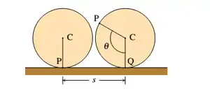 O arco de circunferência deverá ser igual à distância percorrida , já que todos os pontos nesse arco estiveram em contacto com pontos da superfície.