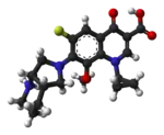 Moxifloxacina é um antibiótico do grupo das fluoroquinolonas que tem por mecanismo de ação a inibição de enzimas responsáveis pela replicação do DNA bacteriano.[1] É uma quinolona nova em comparação com as demais (ciprofloxacina , levofloxacina) e tem em sua molécula a adição de um grupo "metóxi" na posição R2 do anel comum das quinolonas para aumentar sua eficácia contra bactérias atípicas e anaeróbicas.