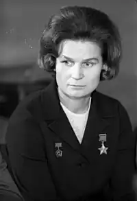 A primeira mulher no espaço foi uma cosmonauta soviética: Valentina Tereshkova foi lançada na Vostok 6 em 16 de junho de 1963.