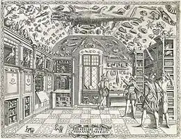 Entre os séculos XVI e XVII, com a expansão do conhecimento do mundo propiciado pelas grandes navegações, se formaram na Europa inúmeros gabinetes de curiosidades, coleções altamente heterogêneas e assistemáticas de peças das mais variadas naturezas e procedências, incluindo fósseis, esqueletos, animais empalhados, minerais, curiosidades, aberrações da natureza, miniaturas, objetos exóticos de países distantes, obras de arte, máquinas e inventos, e toda a sorte de objetos raros e maravilhosos. Tais gabinetes tiveram um papel importante na evolução da história e da filosofia natural especialmente ao longo do século XVII.[8] Na mesma época proliferaram as galerias palacianas, dedicadas à exposição de esculturas e pinturas. Mas tanto os gabinetes como as galerias ainda estavam essencialmente dentro dos círculos privados, inacessíveis à população em geral.[7] Movidas por interesses científicos foram fundadas inúmeras sociedades e instituições, como os jardins botânicos de Pisa (1543) e o de Pádua (1545), a Real Sociedade de Londres (1660) e a Academia de Ciências de Paris (1666), que reuniam suas próprias coleções.[6] No Brasil a primeira coleção de que se tem notícia foi formada pelo colonizador neerlandês conde Maurício de Nassau, cuja corte se notabilizou pelo brilho científico e cultural, instalando-a em torno de 1640 no Palácio de Friburgo, em Recife, semelhante em caráter aos gabinetes de curiosidades.[9]