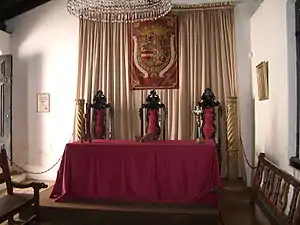 Os itens expostos incluem mobiliário, documentos, utensílios domésticos e pinturas que retratam os personagens históricos.
