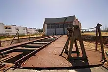 Antiga ponte giratória, com o edifício da cocheira ao fundo.