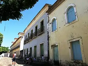 Tem uma fachada revestida de azulejos coloridos e portais emoldurados de pedras de lioz. A planta possuo formato em L, dando lugar a longos corredores avarandados abrindo para um pátio interno, onde se há um poço com bordas trabalhadas em pedra e alvenaria.[1]