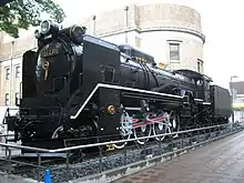Locomotiva a vapor em frente ao Museu Nacional de Ciência do Japão.
