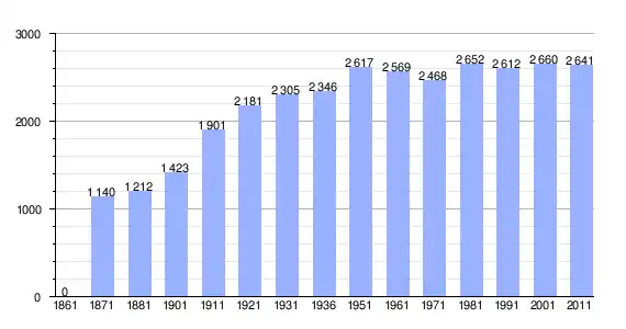 | Variação demográfica do município entre 1861 e 2011[3] |