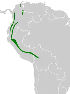Pode ser encontrada nos seguintes países: Bolívia, Colômbia, Equador, Panamá, Peru e Venezuela.[1]