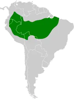Pode ser encontrada nos seguintes países: Bolívia, Brasil, Colômbia, Equador e Peru.[1]