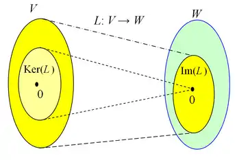 O núcleo de L é um subespaço vetorial do domínio V.[2] Para uma transformação linear L : V → W, dois elementos de V têm a mesma imagem em W se, e somente se, a sua diferença reside no núcleo de L: