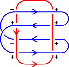 em que n1, n2, n3, n4 representam o número de cruzamentos de cada um dos uatro tipos. As duas somas e são sempre iguais, [2] donde segue a seguinte fórmula alternativa