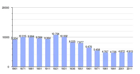 | Variação demográfica do município entre 1861 e 2011[4] |