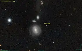 NGC 555 é uma galáxia espiral barrada (SB0-a) localizada na direcção da constelação de Cetus. Possui uma declinação de -22° 45' 42" e uma ascensão recta de 1 horas, 27 minutos e 11,7 segundos.