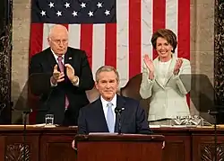 | “ | A eleição de 2006 foi um chamado à mudança - não apenas para mudar o controle do Congresso, mas para uma nova direção para nosso país. Em nenhum lugar o povo americano foi mais claro sobre a necessidade de uma nova direção do que no Iraque. O povo americano rejeitou a obrigação ilimitada de uma guerra sem fim. | ” |