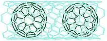 A introdução de substâncias no interior de NCPS é certamente uma das mais fascinantes possibilidades de modificação desse tipo de estrutura. Metais como ouro e prata, pequenas proteínas como a lactamase e fulerenos tem sido inseridos com sucesso no interior dessas cavidades. Como exemplo, pode-se citar a introdução de fulerenos C60, através da abertura do NC (Figura 9). O tratamento desse material em vácuo, sob altas temperaturas (1.200 °C) leva à abertura dos fulerenos, formando NC com parede dupla.