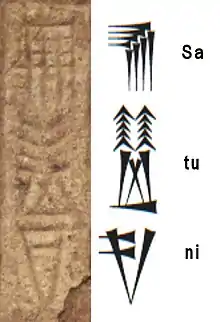 | Deus da Acádia Rei da Suméria e Acádia Rei dos Quatro Cantos do Mundo Rei do Universo | |