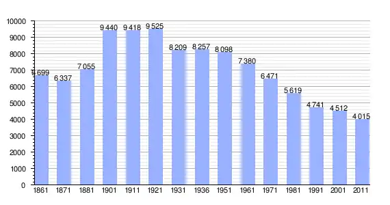 | Variação demográfica do município entre 1861 e 2011[3] |
