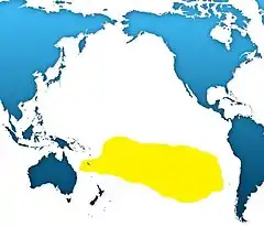 Pode ser encontrada nos seguintes países: Chile, Polinésia Francesa, Kiribati, Nova Caledónia, Vanuatu, possivelmente Samoa Americana, possivelmente Fiji e possivelmente em Samoa.