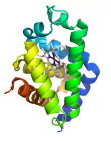 - Burmester T, Weich B, Reinhardt S, Hankeln T (Setembro de 2000). «A vertebrate globin expressed in the brain». Nature (em inglês). 407 (6803): 520–3. PMID 11029004. doi:10.1038/35035093