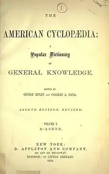A nova ciclopeia americana foi revisada e republicada como a American Cyclopædia em 1873.[1]