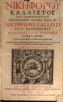 Nicéforo Calisto Xantópulo (em grego: Νικηφόρος Κάλλιστος Ξανθόπουλος, transl. Nikephoros Kallistos Xanthopoulos, latinizado para Nicephorus Callistus Xanthopulus), de Constantinopla, o último dos historiadores eclesiásticos gregos, desenvolveu a sua actividade, cerca do ano de 1320.