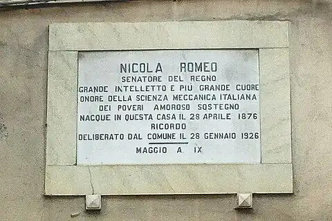 Uns 70 anos depois, no aniversário de 130 anos de seu nascimento, Nápoles dedicou uma rua à memória de Nicola Romeo, a Via Nicola Romeo.