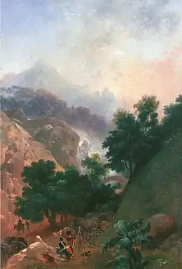 A breve estadia de Taunay no Brasil não foi improfícua, passando a captar o ambiente local em suas pinturas. Segundo o historiador Afonso d'Escragnolle Taunay, bisneto do pintor, "desde o dia do desembarque, fascinado pela beleza da paisagem fluminense, apaixonado pelo sol glorioso das terras da Guanabara, tratou Nicolas de instalar-se em algum recanto das cercanias da cidade, onde estivesse em íntimo contacto com a natureza estupenda. Não tardou em descobrir delicioso retiro de edênica beleza, a ‘Cascatinha Taunay’, na Tijuca; adquiriu alguns alqueires de floresta em torno da cachoeira e ali edificou pequena mas confortável casa".[9]
