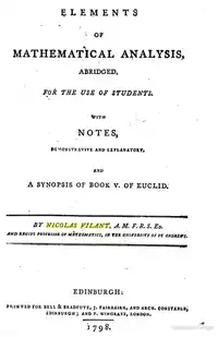 - Craik, Alex D.D. (2012). «A forgotten British analyst: Nicolas Vilant (1737–1807)». Historia Mathematica. Vol. 39 (Num. 2): 174-206. ISSN 0315-0860. doi:10.1016/j.hm.2011.10.002