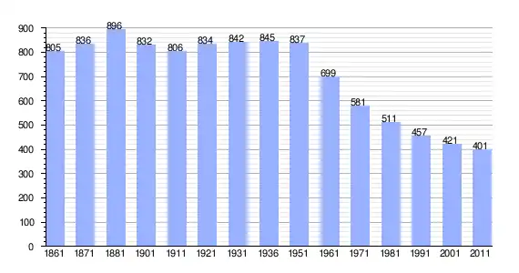 | Variação demográfica do município entre 1861 e 2011[3] |