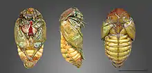 Em francês, o termo nymphe é utilizado para a forma intermediária entre larvas e imagos, em insetos com holometabolia. Corresponde a pupa em português.