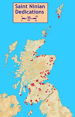 Dedicações a São Niniano são expressões de respeito às boas obras atribuídas a ele e a autenticidade das histórias sobre não são relevantes neste sentido. Quase todas são de origem medieval, depois do relato de Elredo. Elas podem ser encontradas por toda a região habitada pelos antigos pictos na Escócia, nas ilhas Orkney e Shetland e em partes do norte da Inglaterra. As encontradas na Ilha de Man são da época da dominação escocesa medieval e não inspiradas nativamente.