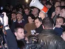 Como parlamentar e líder da oposição, em 2003 encabeçou uma onda de críticas que levou o país a uma severa crise institucional, a qual desencadeou a renúncia de alguns funcionários e a reestruturação de algumas instituições. O conflito se resolveu parcialmente por meio do diálogo proposto pelo governo. Esse conflito é conhecido como Revolução Rosa.