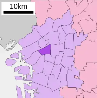 | Municípioadjacente Distrito administrativo adjacente | Cidade de Yokohama ( Kanagawa-ku , Naka-ku , Minami-ku ,Hodogaya-ku ) |